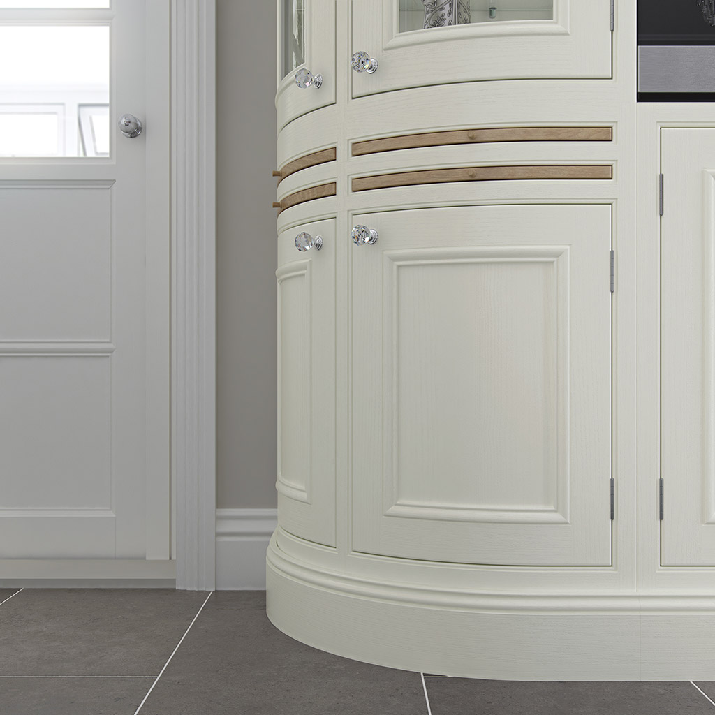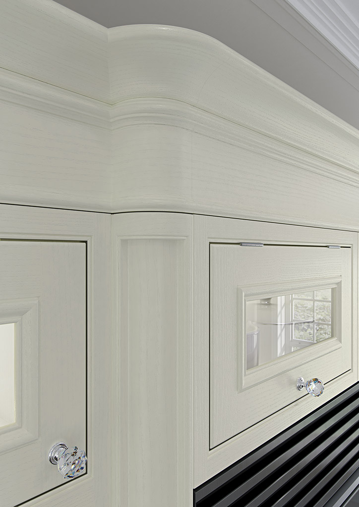 Accessories include handcrafted 5-piece posts to highlight appliances or other important features, moulded plinths that match the detailing in the door and lavishly embellished Charlotte posts which are used for worktop support.