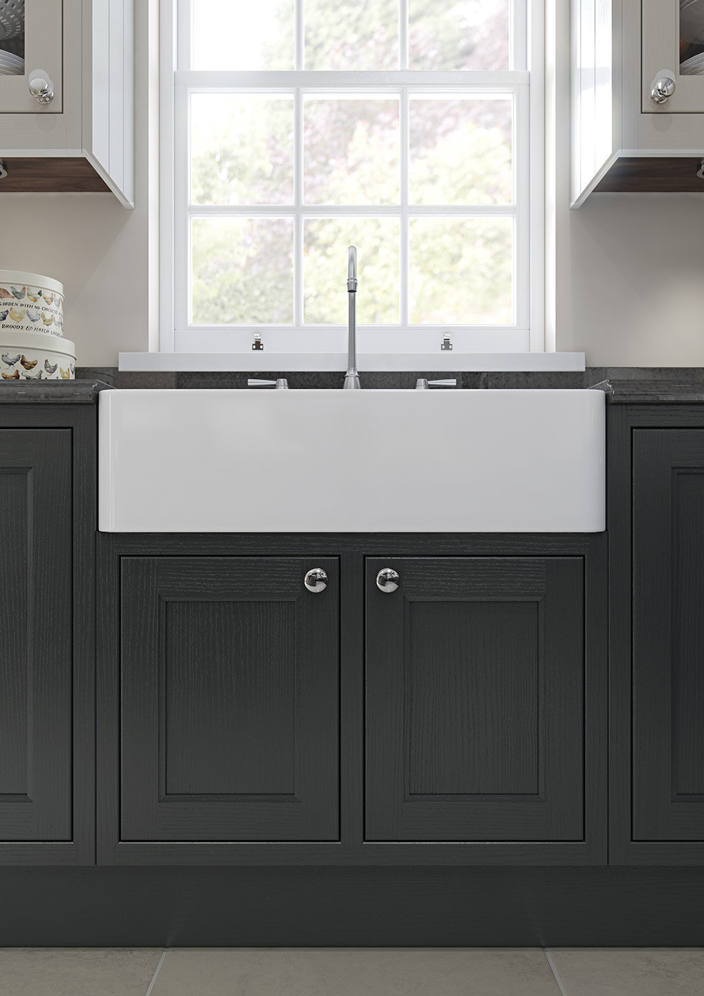 With its sumptuous finish and thoughtful detailing, the Sutton kitchen adeptly shows how traditional can meet modern with outstanding results. This shakerstyle door design is given a new twist with a stepped frame around the centre panel and it fuses beautifully with the double cornice and imposing overmantle, making the kitchen feel incredibly spacious and elegant.