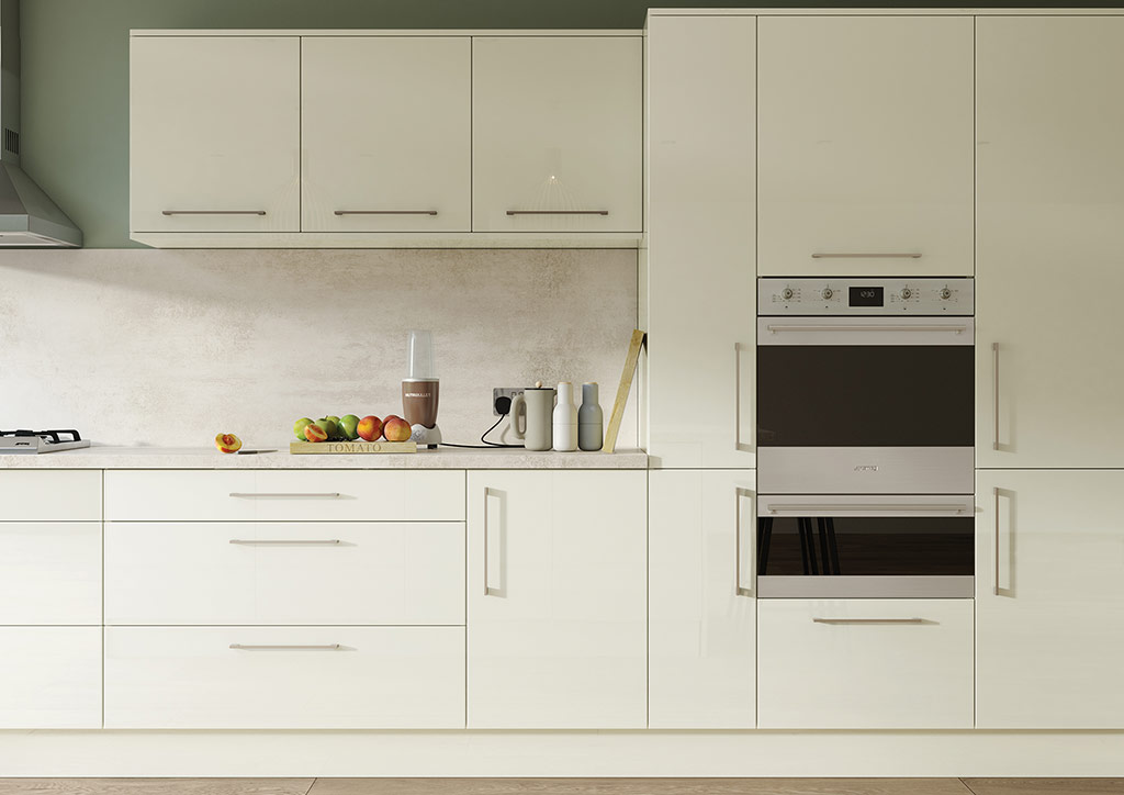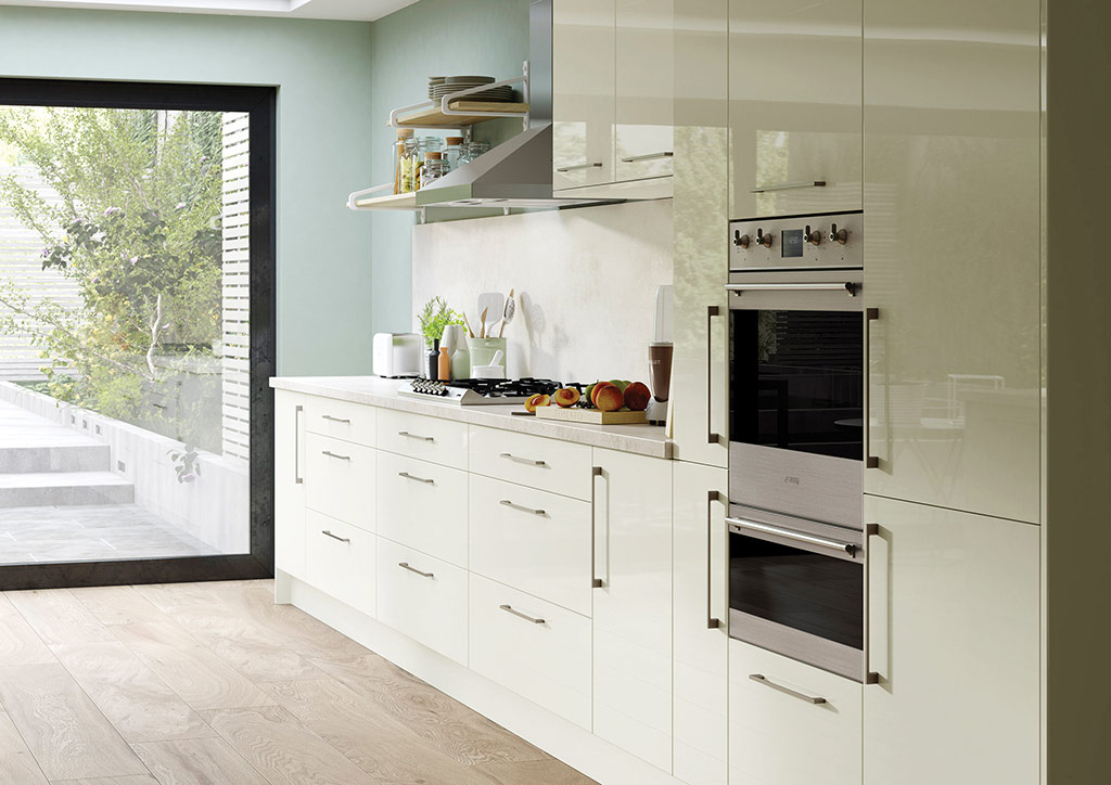The ultimate example of unconventional styling, the Zola door comes to life here with a vivid mix of colours and accessories. Emphasised by a mock inframe surround, this kitchen welcomes a diverse array of decorative elements such as contrasting floor finishes and brightly coloured furniture and upholstery to show its quirky side.